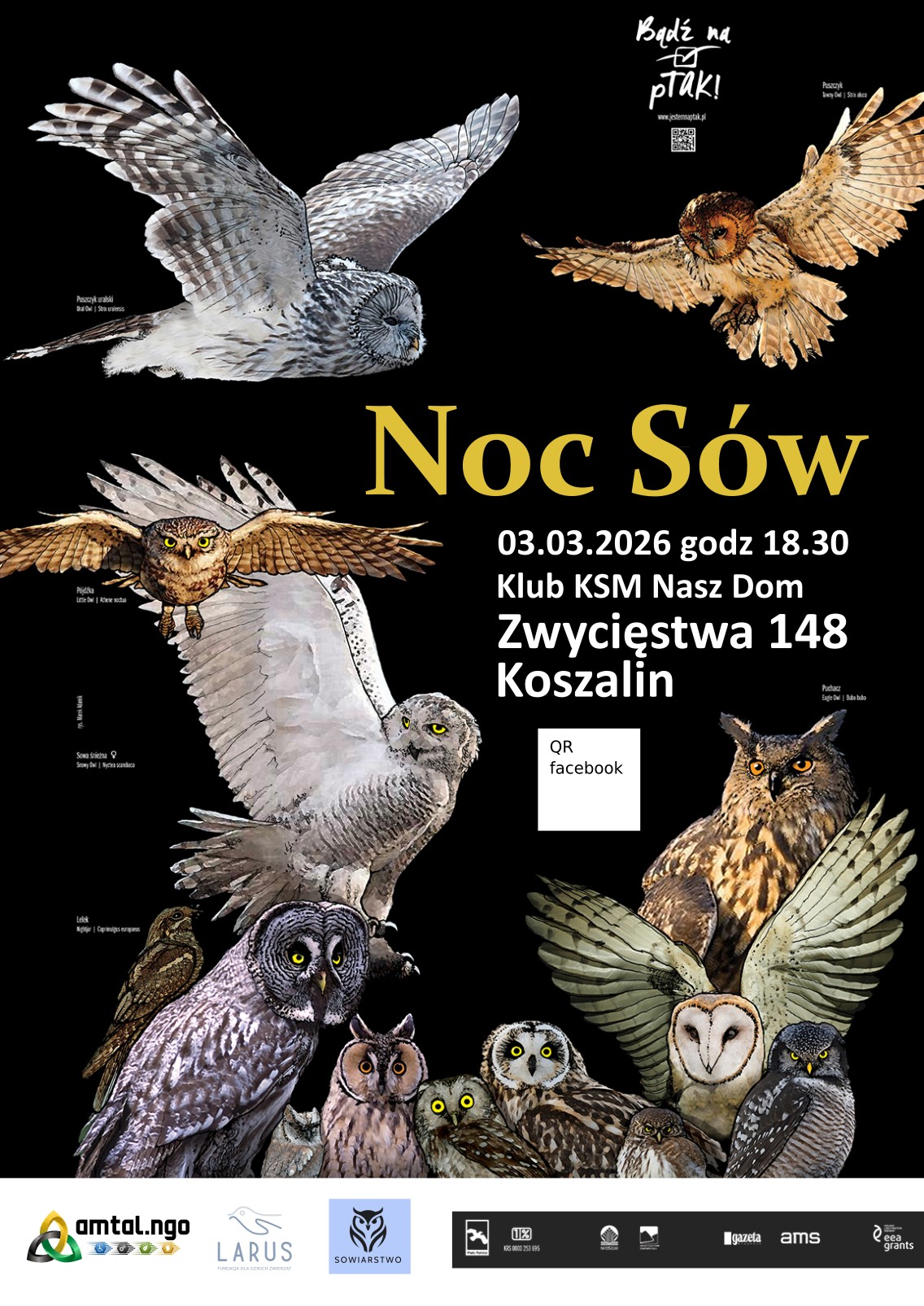 mar 3 Noc Sów w Koszalinie – Poznaj tajemniczy świat nocnych łowcõw z Fundacją Amtal i Larus! 18:30 - 21:00 KSM "Nasz Dom" ul. Zwycięstwa 148, Koszalin Wydarzenie Details Get Directions